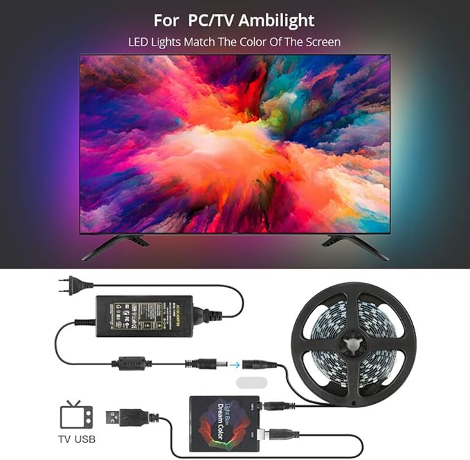 Amazon Com Dreamcolor Usb Led Strip Light Kit With App Rope Lighting Rgb Dream Color Strip Tv Bias Lighting Ws2812 Tape Ribbon String For 27 40 Inches Hdtv Desktop Pc Screen Individually Addressable Led - Led tv backlights, govee wifi tv backlights kit with camera, tv led strip lights compatible with alexa, app control music led.